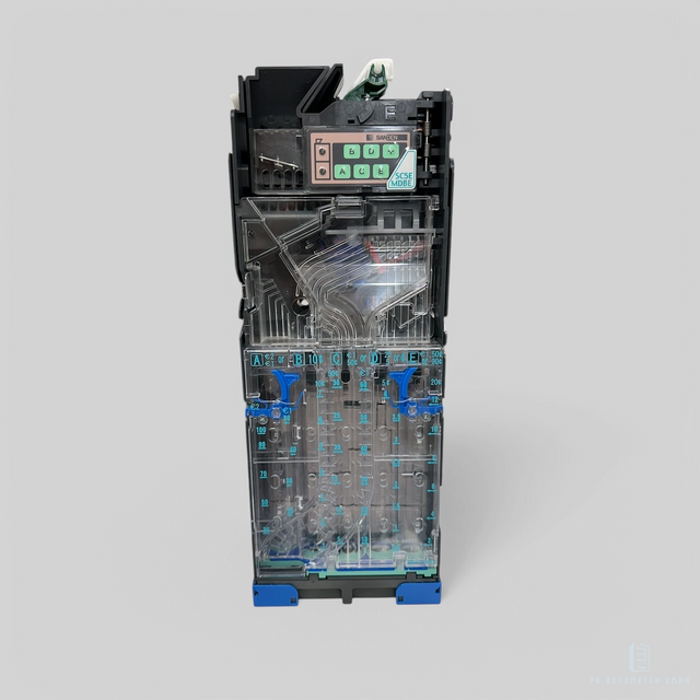 Der SandenVendo SC5E Münzwechsler überzeugt durch seine robuste Bauweise und einfache Handhabung. Er ist für die Münzwerte 0,10 €, 0,20 €, 0,50 €, 1,00 € und 2,00 € ausgelegt und eignet sich ideal für den Einsatz in Verkaufsautomaten, Kiosken und Ticketautomaten.