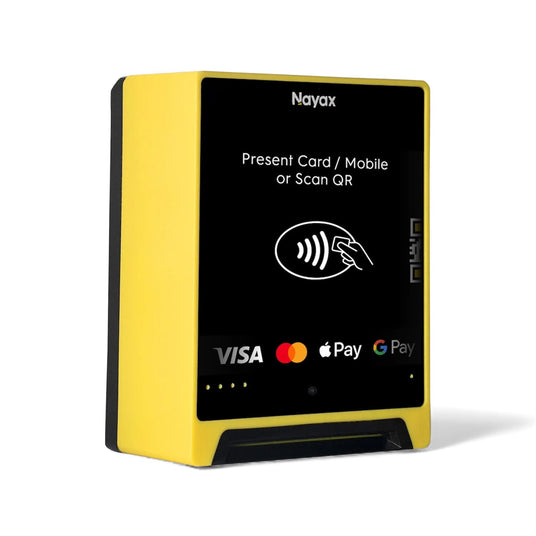 Alle Nayax-Geräte akzeptieren Kredit- und Debitkarten, einschließlich Durchzugs-, Kontakt- und kontaktlose Karten. Je nach gewähltem Gerät werden auch mobile Wallets, NFC und QR-Codes unterstützt.